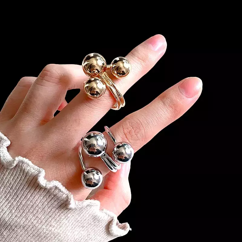 Este anel contemporâneo em prata possui um design sofisticado e minimalista, composto por três esferas de tamanhos diferentes interligadas de maneira elegante. Com acabamento polido e brilho intenso, ele reflete a luz de forma única, destacando-se como um acessório marcante e estiloso. Ideal para quem busca uma peça diferenciada e cheia de personalidade, que combina perfeitamente com diversos estilos e ocasiões.